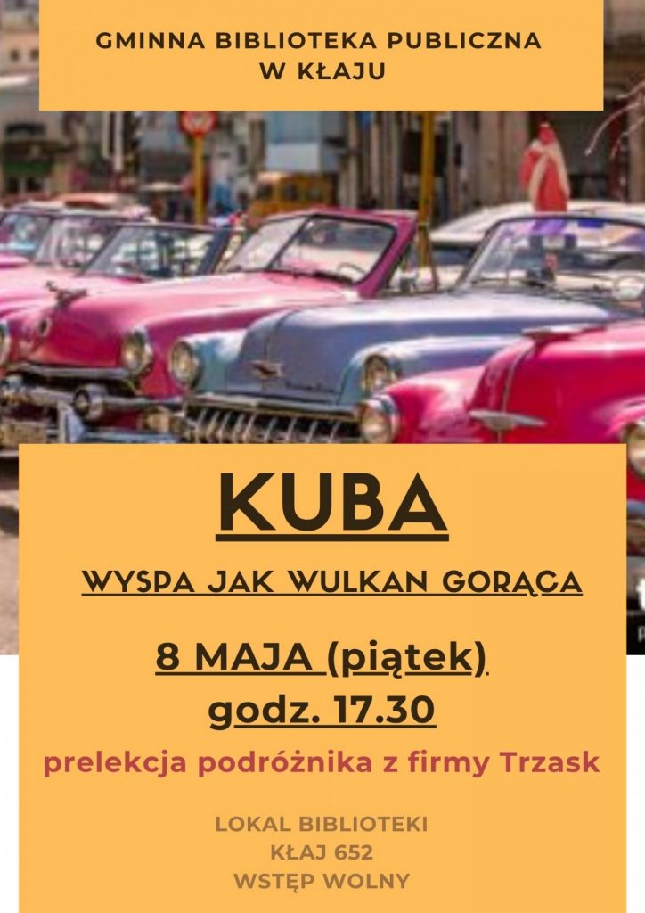 Biblioteka w Kłaju zaprasza na spotkanie z podróżnikiem z firmy Trzask, który opowie nam o KUBIE.